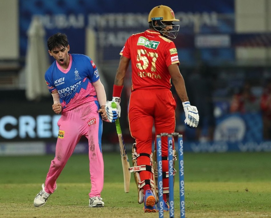 अन्तिम ओभरमा पन्जाबलाई जितका लागि ४ रन आवश्यक थियो । तर, राजस्थानका बलर कार्तिक त्यागीले अन्तिम ओभरमा १ रन खर्चिएर २ विकेट लिएपछि पन्जाब जितबाट बन्चित भयो। पन्जाबका लागि मायांक अग्रवालले ६७ रनको अर्धशतकीय इनिङ्स खेले। केएल राहुलले ४९ रन बनाए। यस्तै निकोलस पुरणले ३२ रन जोड्दा एडिन मार्क्रमले अविजित २६ रन बनाए। राजस्थानका कार्तिकले २ तथा चेतन साकरिया र राहुल टेवाटियाले एक एक विकेट लिए।